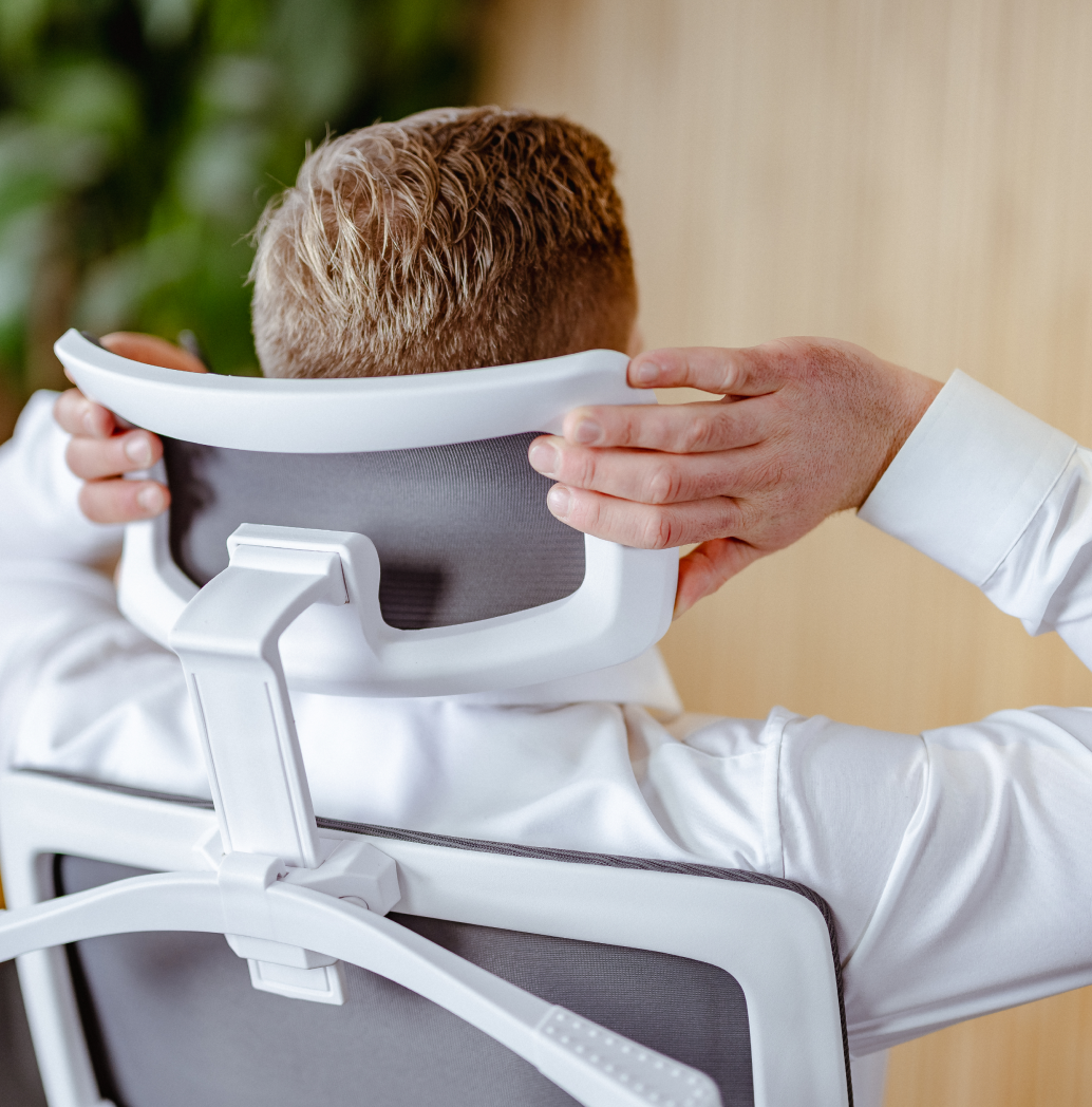Erlebe eine neue Dimension der Entspannung mit der innovativen Ergo-Kopfstütze. Sie lässt sich stufenlos in Höhe und Neigung anpassen und bietet dir so deine perfekte Wohlfühlposition. Das atmungsaktive Mesh umschmeichelt sanft deinen Kopf und Nacken, sodass auch nach langen Arbeitsstunden höchster Komfort garantiert ist. Diese besondere Unterstützung ermöglicht es dir, den Arbeitstag entspannt und ohne Verspannungen zu beenden. Ein Komfort, den du sofort spüren wirst.