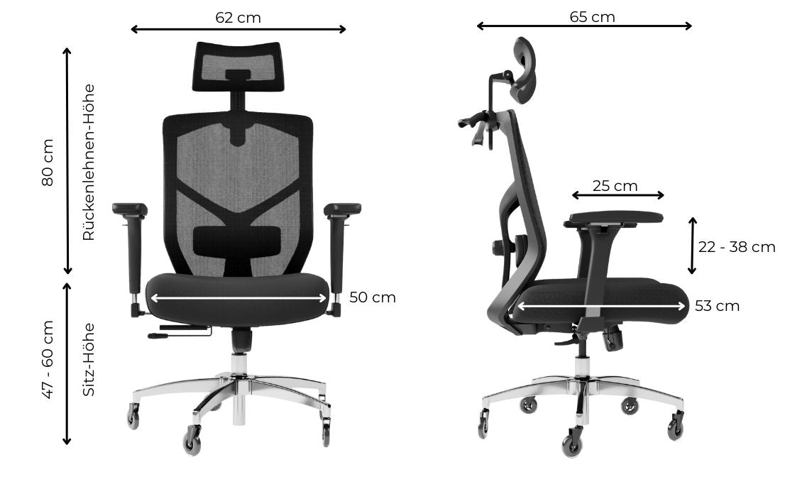 Ob Sitzhöhe, Rückenlehne oder Armlehnen – der ELITESEATS Bürostuhl sorgt für langanhaltenden Komfort und beugt Rückenbeschwerden effektiv vor, damit du dich den ganzen Tag wohlfühlst. So wird selbst langes Sitzen zu einer angenehmen Erfahrung.